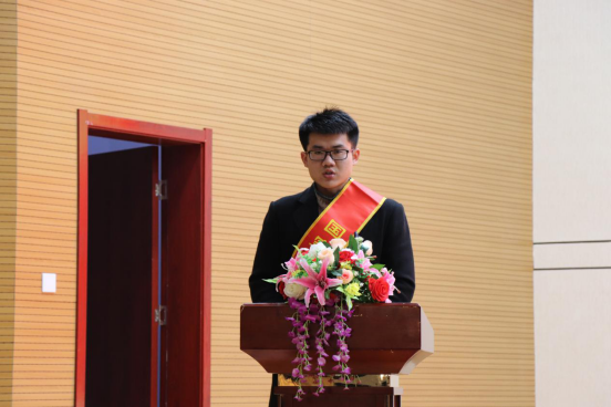 随后由学生代表发言,土木工程系国家励志奖学金获得者程功勋在大会上表示对党和国家的支持与鼓励致以崇高的敬意及对学院领导与老师的培养与帮助表示衷心的感谢,同时叙述了自己在步入大学前的蜕变和在大学后努力奋斗的成长历程,并表示充分发挥好学生干部模范带头作用,一如既往地奋斗下去,与同学携手并进,一起用青春的激情和毅力去创造美好的未来。