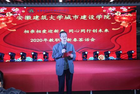 “相亲相爱迎新春,同心同行创未来”,1月16日下午,安徽建筑大学城市建设学院2020年新春茶话会在黄麓校区举行,院领导林瀚、张伟林、李义宝、赵治滨、王志建、马建国、魏宪友、田园、杨彦友、宇晓锋出席,全院教职工参加,广东番禺职业技术学院党委书记林洽生一行到会祝贺。董事长、党委副书记林瀚、院长张伟林致辞,副院长王志建讲话。茶话会在劲歌热舞中拉开序幕,精彩的互动抽奖节目将整场茶话会推向高潮。