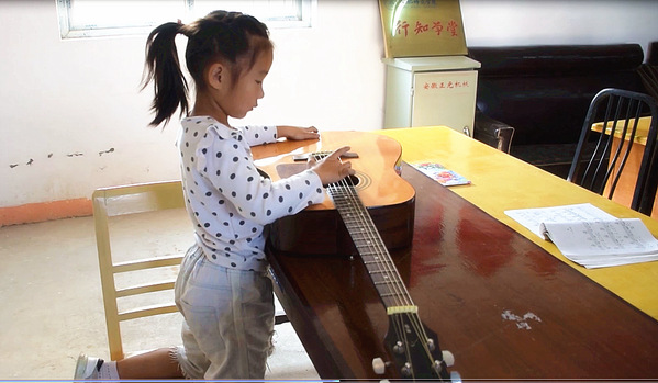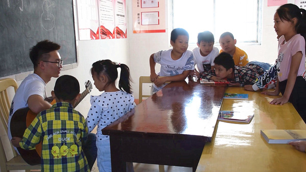姜伟说:有一次支教我们去迟了。这些孩子就在村委会向外观望,他们在门口徘徊,看到我们出现,一窝蜂的拥过来,围着我们,这件事让我最为难忘。也是这件事更加坚定了我继续开设音乐课堂的决心,从第一节课开始到现在,每节课我都会去,我要尽自己最大的努力去帮助这些孩子,放飞他们的梦想。