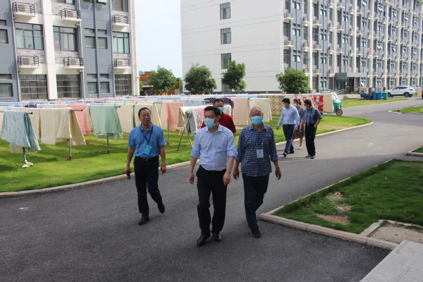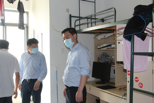 2020年5月20日,安徽建筑大学副校长黄显怀,保卫处处长斯方龙一行来我院检查指导第一批学生返校工作。我院董事长、党委副书记林瀚,副院长王志建,副院长马建国,党委副书记魏宪友,副院长田园接待了黄校长一行。