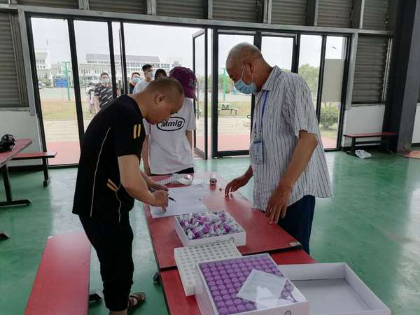6月3日下午2:30,院防疫办,学生处,后保处,校医院在学院体育馆组织325名学生及教师进行核酸检测,在检测现场,项目所有待检人员按照检测机构工作人员的要求,距离1米以上进行排队检测。此次核酸检测通过咽拭子,提取被检测人员的核酸样本,将样本存入编配个人专属检测条码的病毒保护密封盒内。据检测人员介绍,此种方法检测时间短、易操作,适合一线人员筛查,48小时内便可以出检测结果。