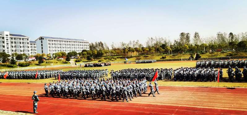 首先,军训领导小组组长王志建检阅了受训学子,并宣布分列式及汇报表演开始。四个系共分为十九个连队,在三位手持礼宾枪的依仗队员的带领下,每个连队迈着整齐的步伐,喊着嘹亮的口号,精神抖擞的走过主席台,接受领导检阅。昂扬的志气和矫健的身姿,无一不彰显出新时代大学生的风貌。分列式结束之后,是男子军体拳、倒计时方阵和退役复学老兵的表演时间,男子军体拳表演动作干净利落,口号铿锵有力。倒计时方阵表演,创新性的将方阵表演与校训展示相融合,给人以强烈的视觉观感。退役复学老兵的展示,清楚的看到了他们两年军旅生活的历练,相信他们也会把部队中所学的的坚韧、不屈服的意志带到校园的学习生活中来。军训时间虽短,但这些参训学子却将军人所特有的浩然正气展现得淋漓尽致。