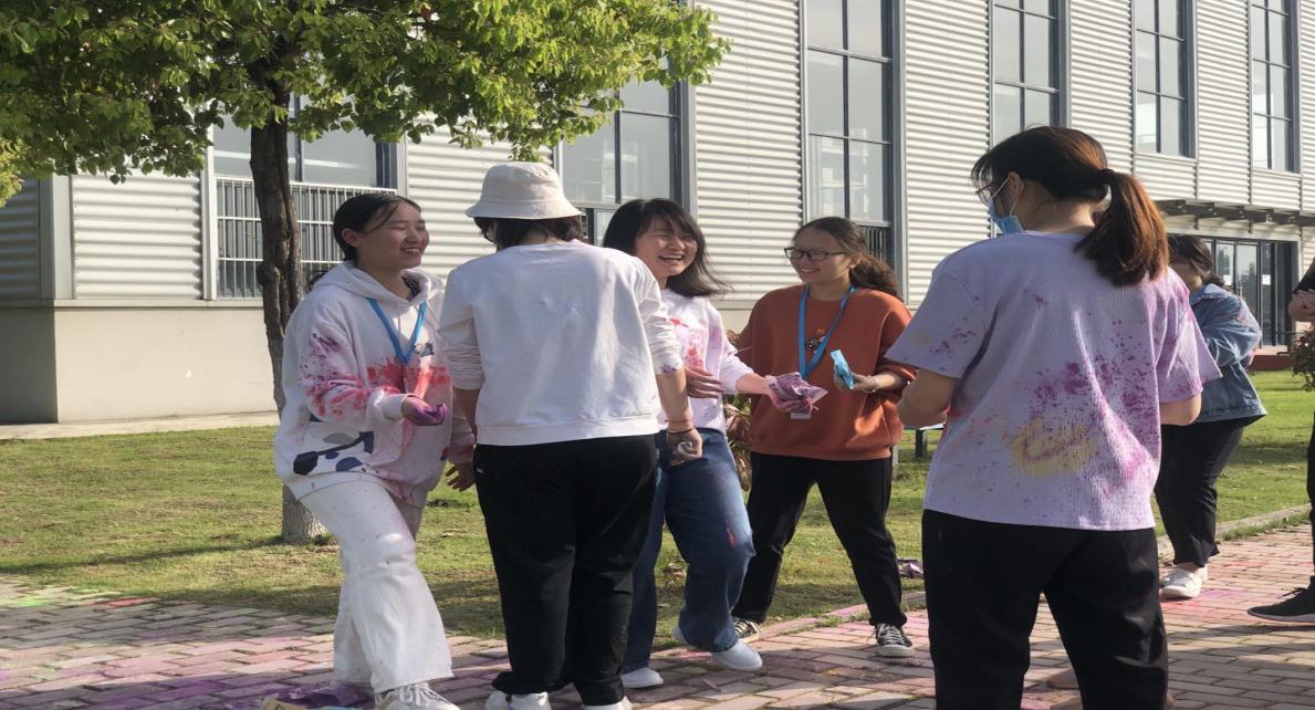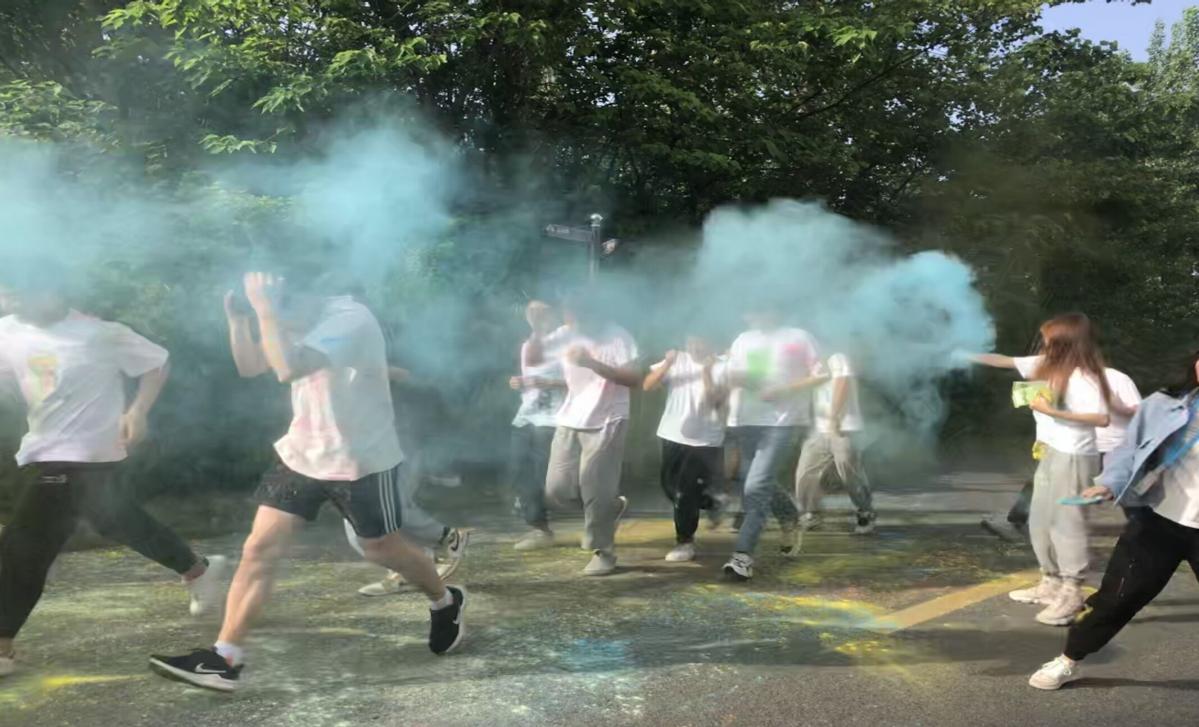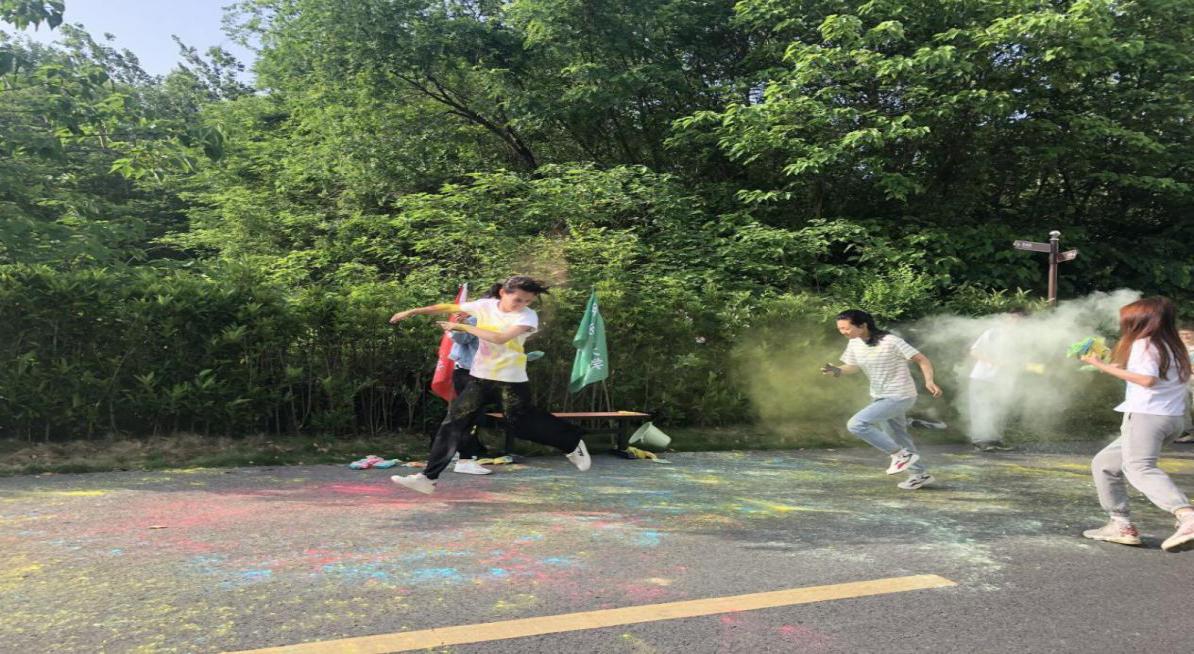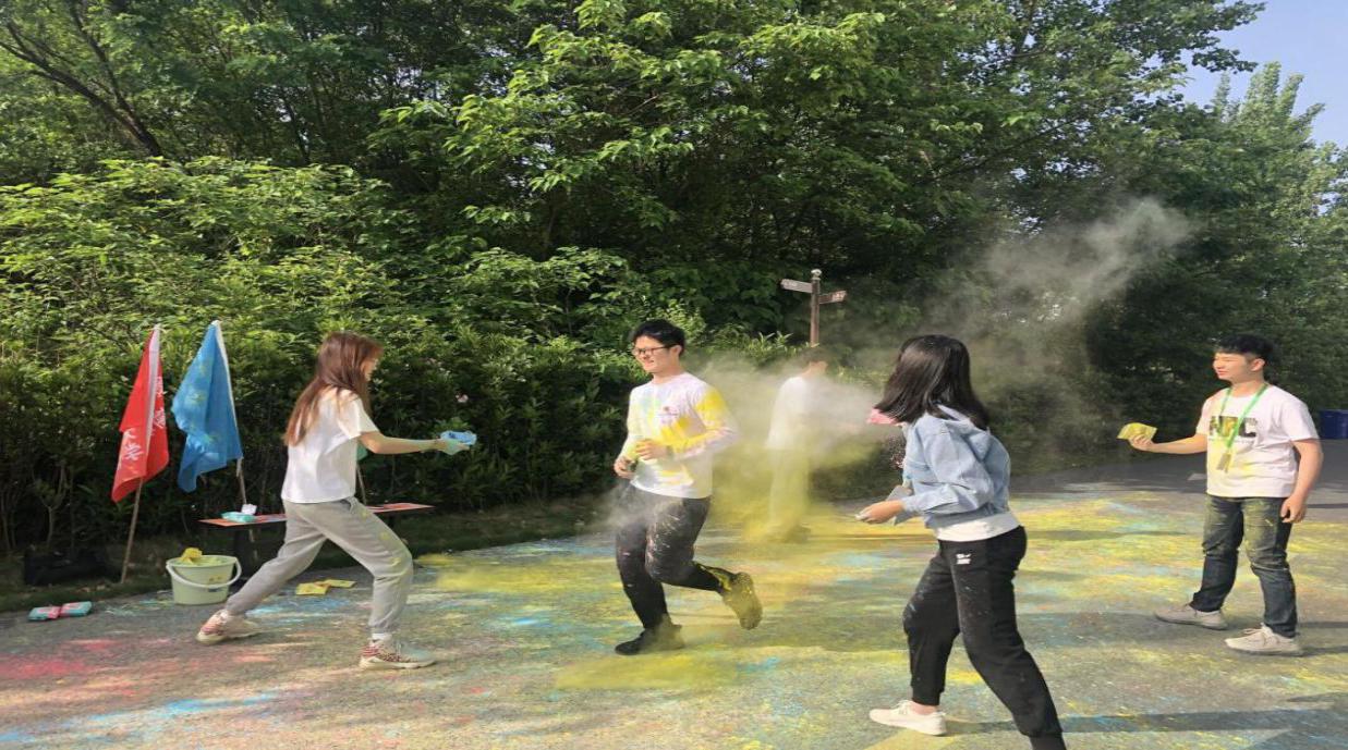 同学们玩的不亦乐乎,甚至还自己互相撒了起来,尽管身上被撒的五彩六色,但也能从中感受到他们非常的快乐,即使被撒,也乐在其中。