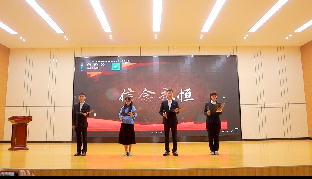 最后,党史宣讲团的全体成员用一首诗朗诵——《信念永恒》预告了活动即将接近尾声,正如诗词中说的一样,“朋友,如今,党已经带领我们,走进第一百个绚烂的春季,多么令人期待的时刻呀,为了今天的到来,我们的奋斗正未有穷期!”