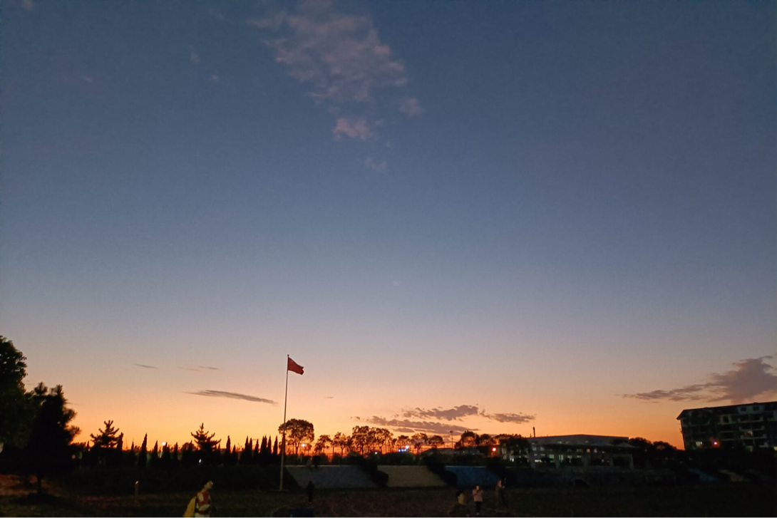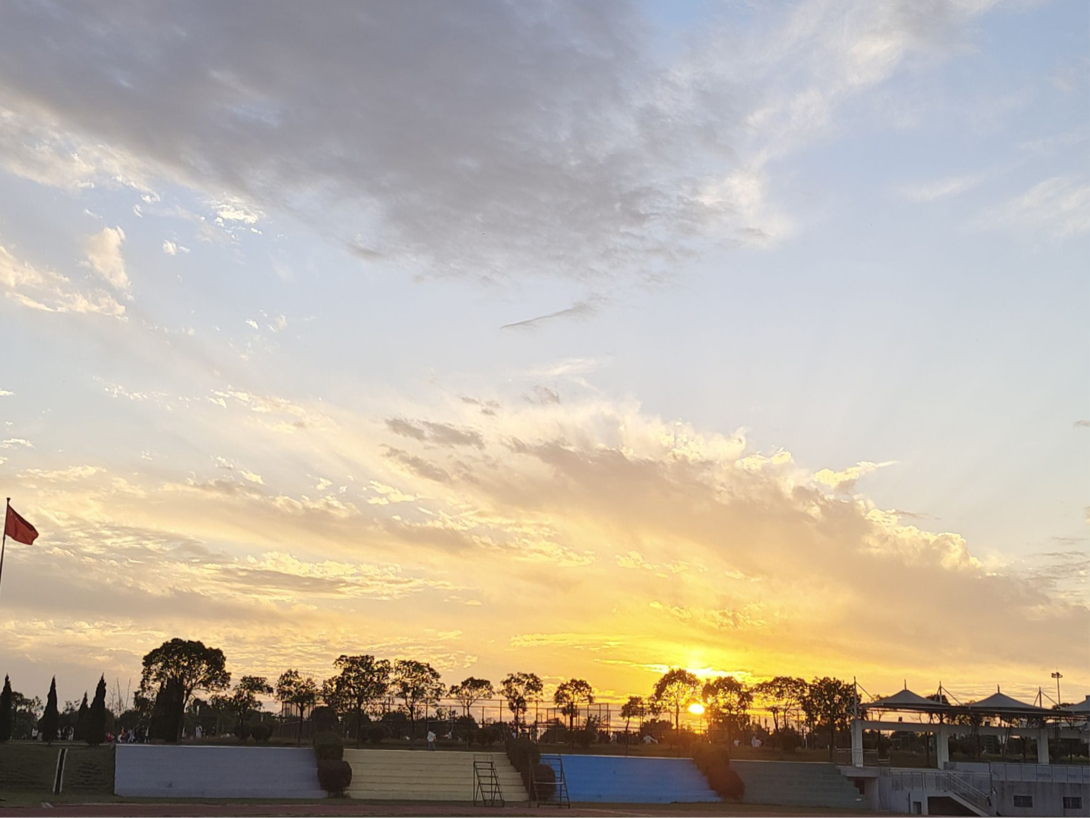 花落深眸里,碎满夕阳。高昂的国旗被秋风轻轻托起,共同演奏着一曲令人心醉的交响乐。主席台上笼罩起金色的寂静,草地上披满了落日的余晖.夕阳从指缝中穿过,洒满一地的挽留,曾经的那些时光总是历历在目。三三两两的人群漫步在饱含泥土气息的操场上,欢愉浅笑和淡薄的清云交汇,似在与这唯美的夕阳说着今天的晚安。我站在这画卷前,许下心中的愿望:遇你,纤风,共夕阳。