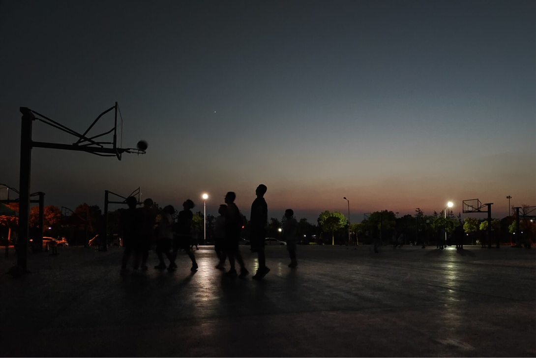 眼神游离在球场上挥汗的小伙子们,为着心爱的运动竭尽全力。夕阳似乎也在注视着他们,久久不愿离去,用尽最后的光来彰显他最后的温柔。塑胶场上倒映着白炽路灯和晚霞,身影晃动,好似用着青春的热情来回应夕阳的点点光晕。艺术家用金色和黑色的画笔层层渲染,勾勒出一幅温柔成熟的落日美图。少年们,用你们的热血和青春,来点燃合城夕阳的谢幕。