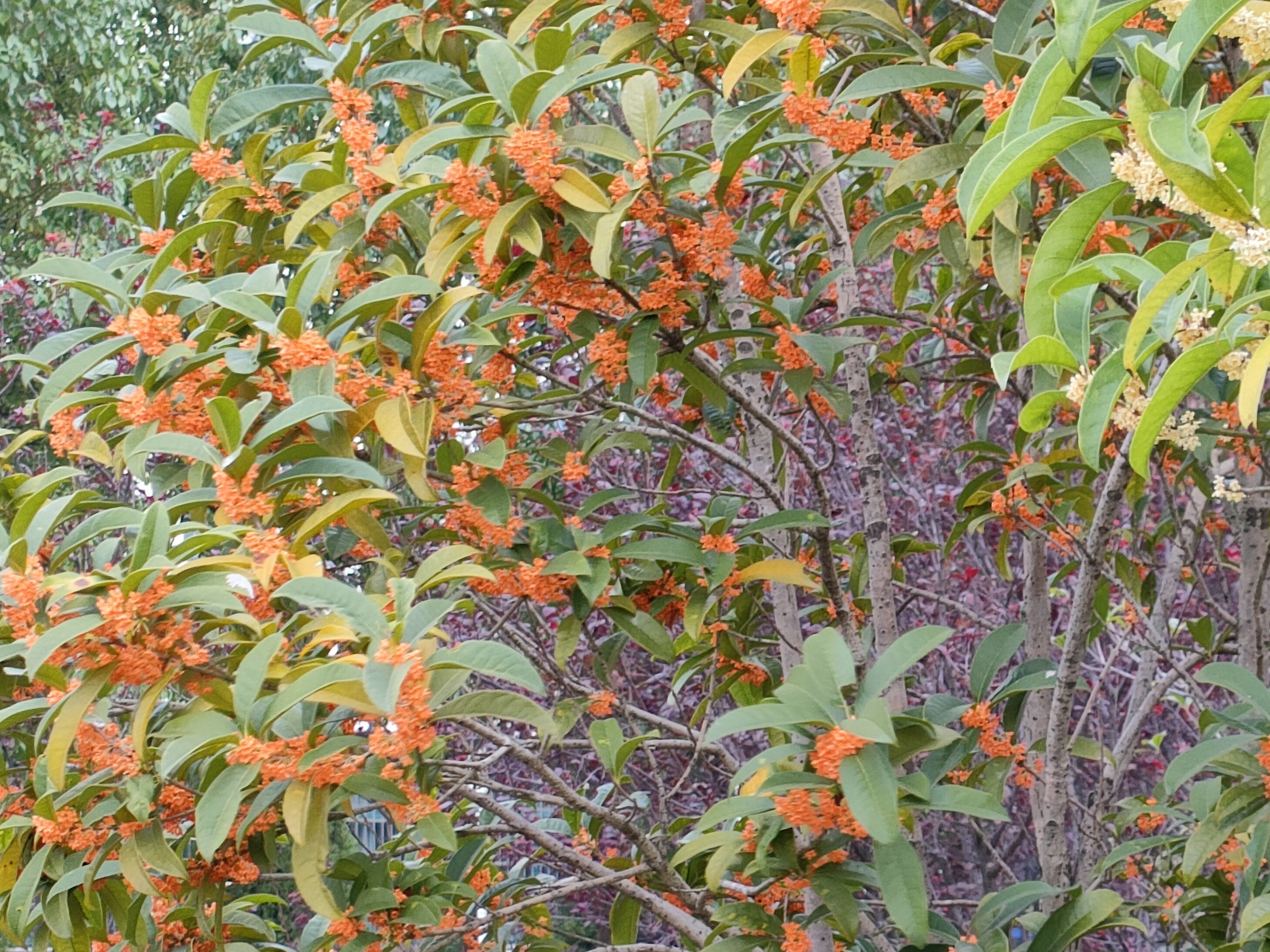 桂花的香味是张扬的,每当桂花绽放时,细碎的花瓣会散发出悠长的香气,让人心旷神怡,而桂花树散发出的那股令人魂牵梦萦的香气也是桂花树最为迷人的时刻。米黄色的细碎花瓣藏在那葱茏的绿叶里,一簇簇像小黄银铃一样的桂花缀满了枝头,桂花的姿色与树叶的颜色是如此的相得益彰,这是大自然美妙的色彩。
