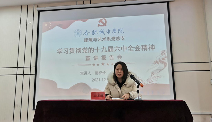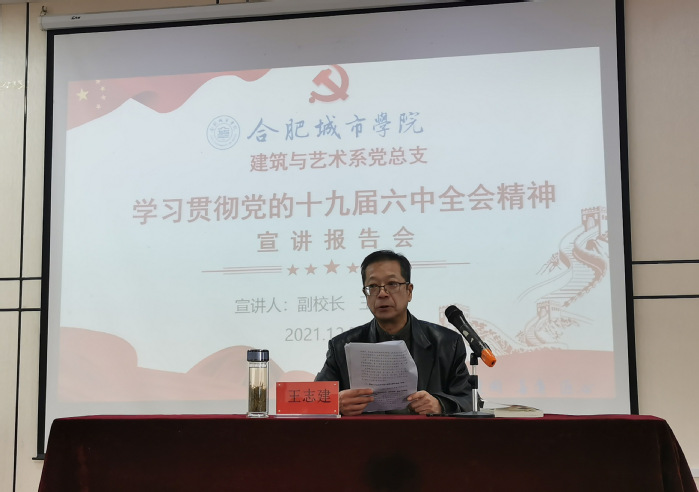 12月30日下午,建艺系总支委员会在图书馆一楼小报告厅组织学习党的十九届六中全会精神。副校长王志建作专题宣讲报告。系部党政负责人、全体教工党员、部分学生党员参加了大会。会议由党总支书记王利康主持。
