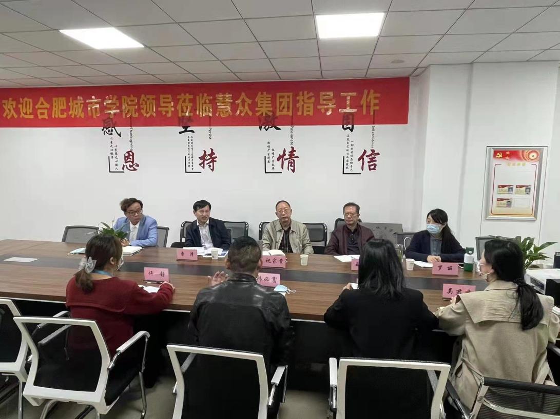 安徽同济公路工程试验检测有限公司董事杨冬林、王来来,合肥慧众财务管理财务管理有限公司监事韩必富分别接待祝家贵一行,并举行“访企促岗、产学研融合”交流研讨会,就校企各自发展愿景和合作需求、校企深度合作、产教深度融合等课题作深入交流研讨。