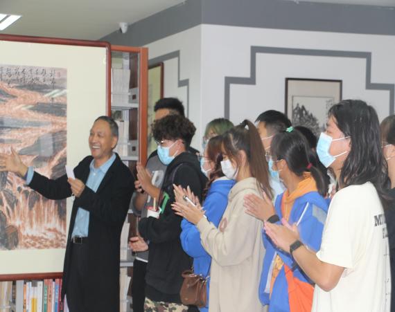 书画展作者、马克思主义学院教师孙玉清表示,他走遍祖国的大好河山,感慨党和国家巨大发展成就来之不易,把对党的无限崇敬之情诉诸画笔,书画中国共产党人精神谱系,以表达牢记伟大建党精神、传承红色基因、奋进新征程的决心、信心。在观展中,孙玉清现场讲解每幅书法绘画作品所表达的精神,参展的师生也纷纷表示,中国传统书画艺术形式描绘党史,既感受到了中华传统文化的深厚底蕴又深深体会到了党史的强大魅力,作为新时代青年大学生,学习党史、牢记党史,赓续红色血脉,永远跟党走,不负韶华奋进新征程。
