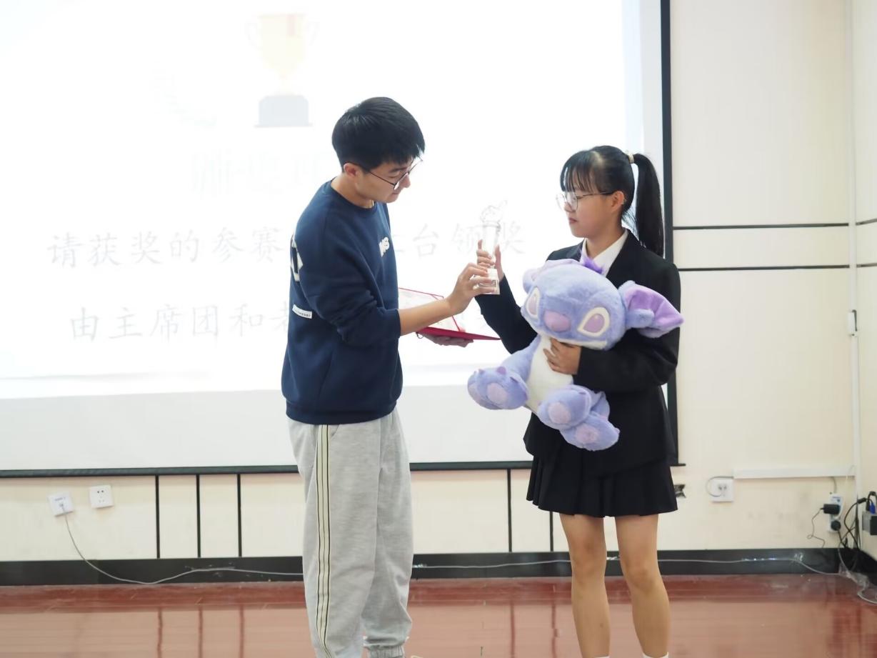 经过激烈的角逐,22城乡规划队荣获冠军,22建筑一班队摘获亚军,22视传二班队获得季军,来自冠军队的孙雨轩同学同时获得了最佳辩手称号。最后,李鑫洋老师和学生会主席团为获奖选手颁奖。