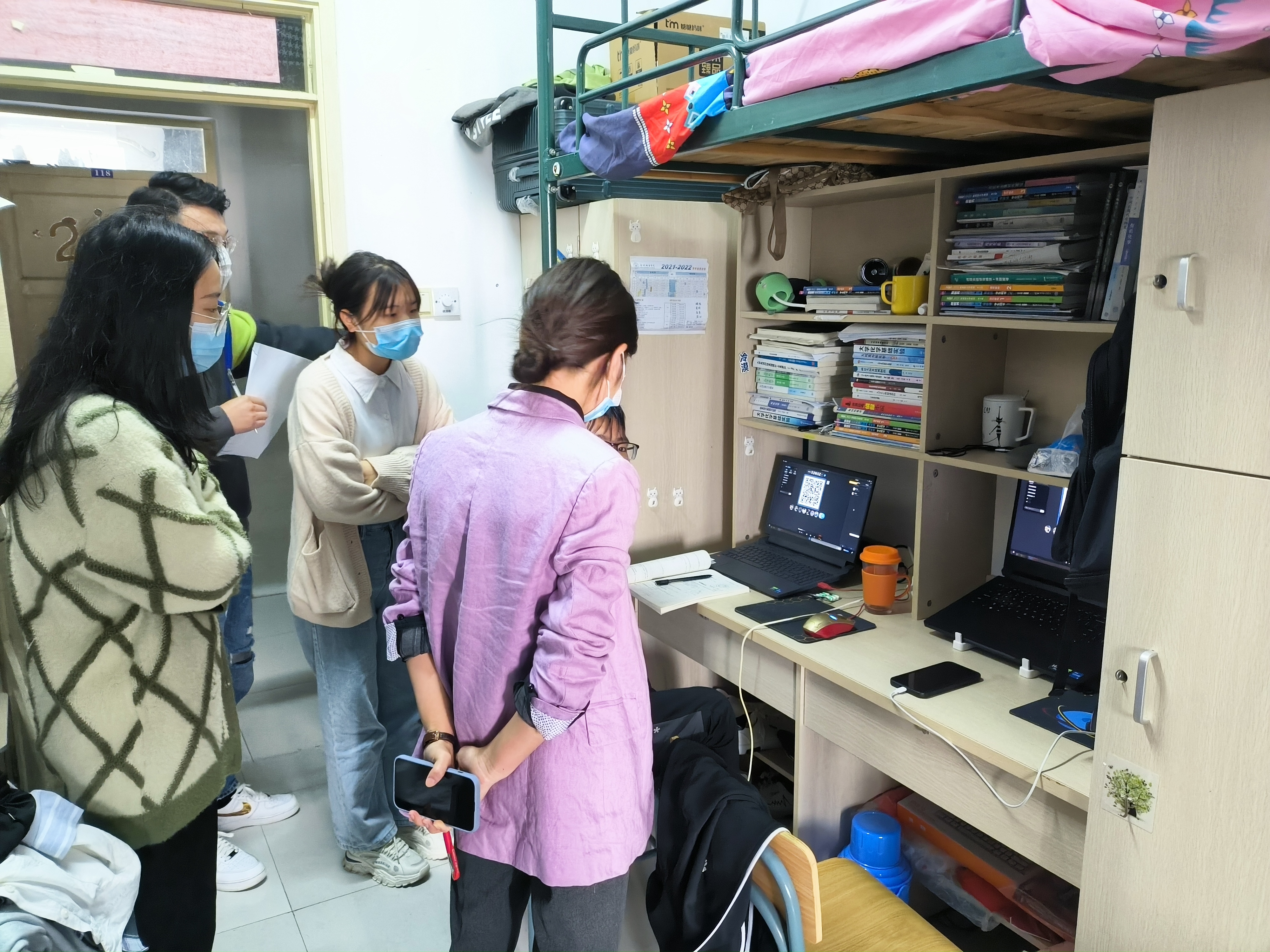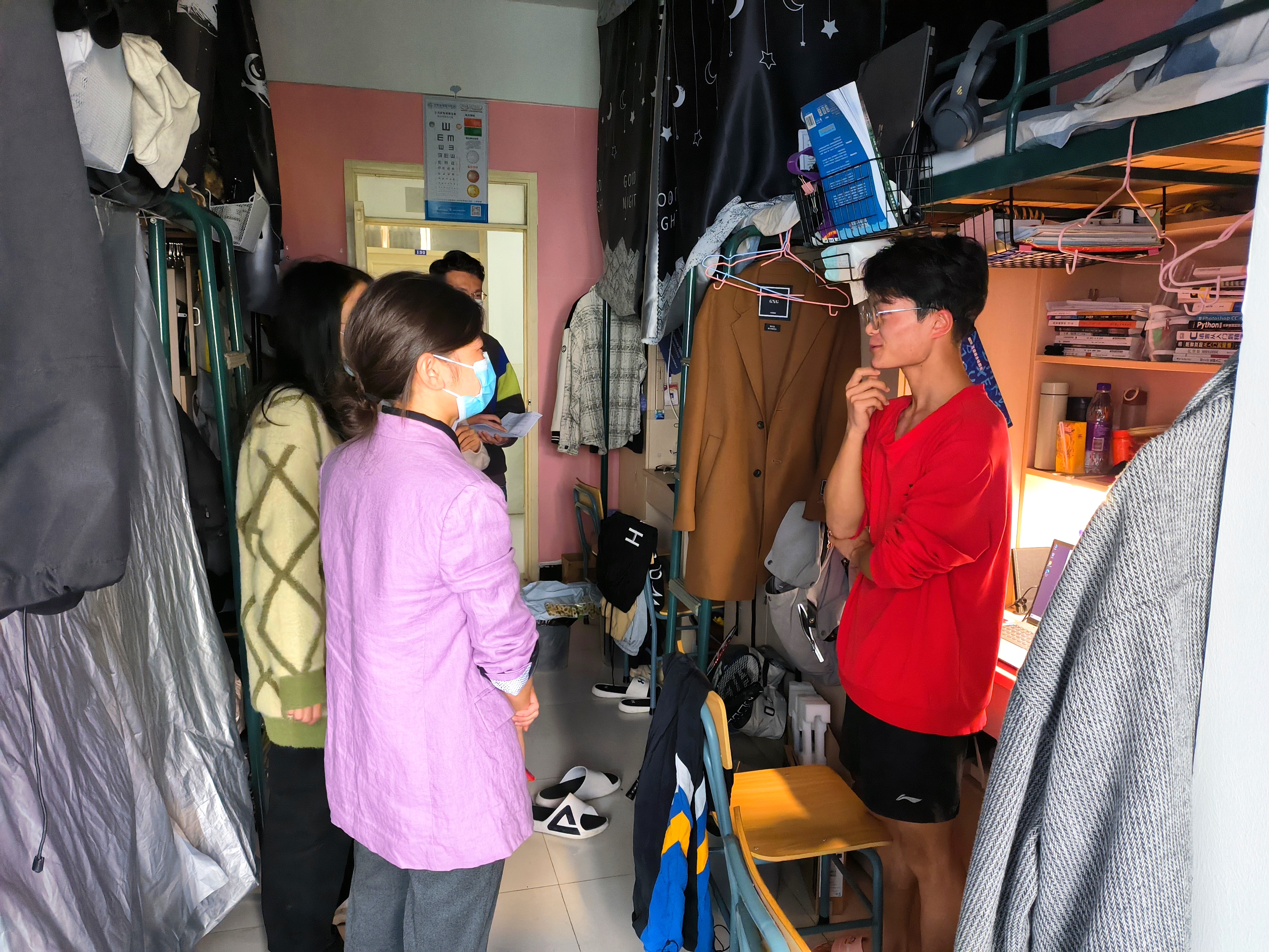 10月21日以来,因属地疫情防控需要,学院大部分课程转为线上教学,为进一步了解学生思想、学习和生活状况,确保线上教学质量,11月1日上午,土木工程学院党总支副书记张敬知带队深入学生宿舍了解学生线上学习、生活情况。院长助理吴研、教学秘书孙缓缓、辅导员李新义等参加走访。