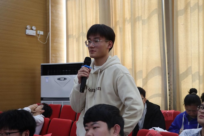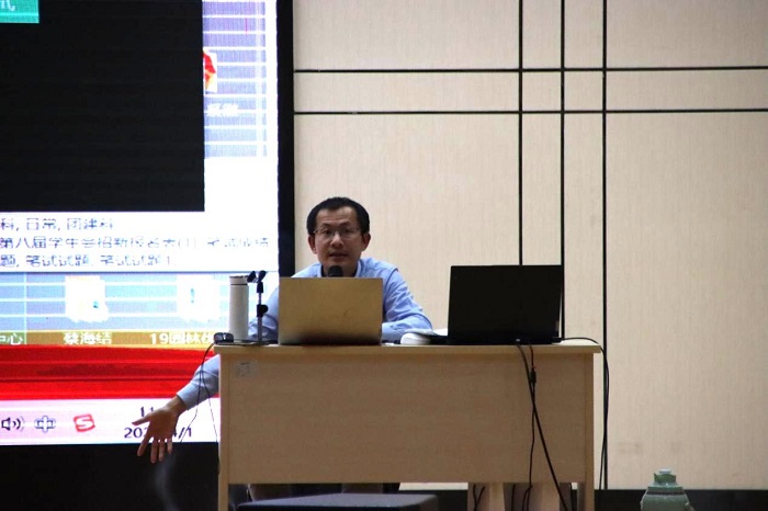 林岳带大家回顾了百年来中国从山河破碎到国泰民安,从满目疮痍到民族振兴,中国人民在中国共产党的领导下取得的一个又一个伟大胜利。历史证明,坚持党的领导是实现中华民族伟大复兴的根本保证。为激发学生主动思考、敢于质疑的能力,林岳以《亮剑》为引,将电视剧中的片段结合工作中可能遇到的实际问题,让学生们学会如何从自身出发寻找问题的根源,并不断优化整个学生组织的引领力、组织力、服务力和贡献度。