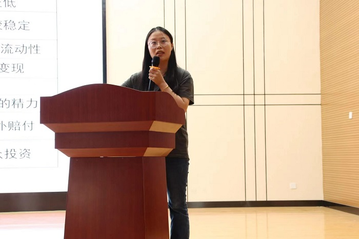 第八届东方财富杯国奖获得者苏婷和东方财富杯指导老师鄢雯为大家带来经验分享。苏婷从参赛选手的角度为同学们介绍了参赛的心路历程,她说到:“看着通过自己努力不断提高的数据,会很有成就感,和不断坚持的动力”,鄢雯老师从经济发展、个人生活需求的角度向同学们讲解了投资理财的必要性,提醒同学们要注重财富的保障。
