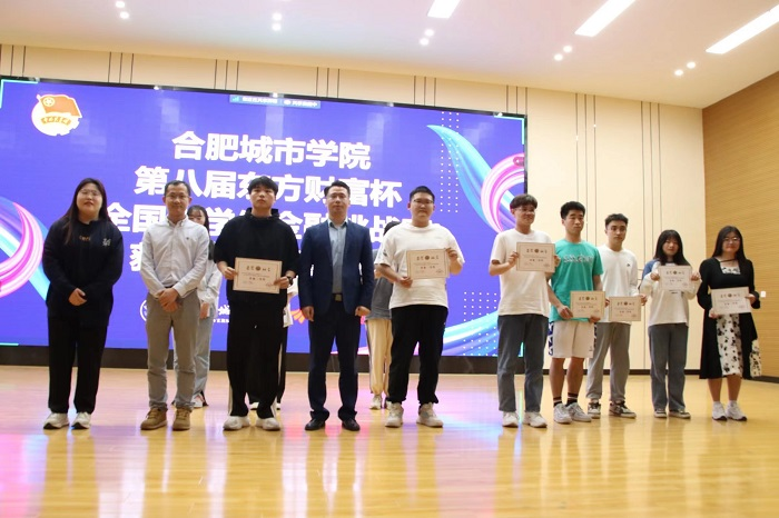 会上,林岳和东方财富的各位老师为第八届东方财富杯获奖代表颁奖。2022年,我校共有113支队伍在省赛获奖、17支队伍在国赛中获奖。