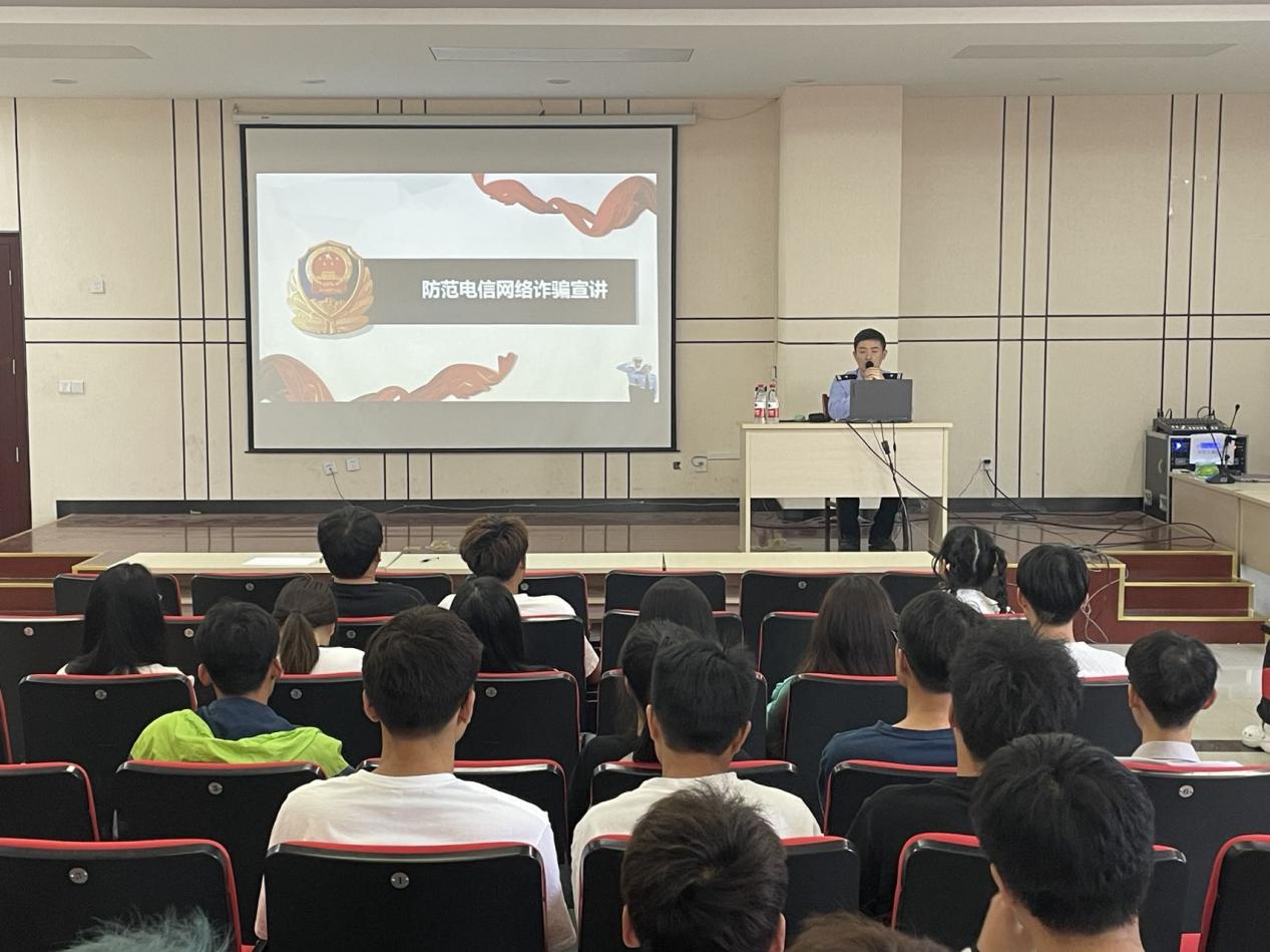 祝杰围绕“常见的诈骗类型”"应掌握的诈骗技巧”“面临的法律风险” 三个方面,为同学们再次强调了如何识别新型诈骗、怎样提高自身反诈防骗意识和能力等有关知识,遇到困难可及时拨打公安电话报警或联系后勤保卫处求助。并发动同学们要把今天所听到和受益到的知识回去后一定要转告给家人、同学、朋友,让人人都知道,杜绝上当受骗。