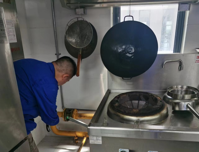 检查过程中,工作人员对食堂档口、后厨、锅炉房等重点区域的内外管道、燃气设备、使用环境、燃气安全设施、燃气报警装置、燃气灶具熄火保护装置和自动化控制系统等开展了专项检查,同时张贴了《安全用气须知》,做到早发现、早预防、早处置。对综合楼餐饮户液化气设施设备逐个进行排查,仔细检查了灶具是否完好、管道有无破损与泄漏、燃气截断阀、燃气报警器是否完好可用等,并将排查的情况进行记录,建立排查台账,同时对发现的问题隐患要求立整立改。