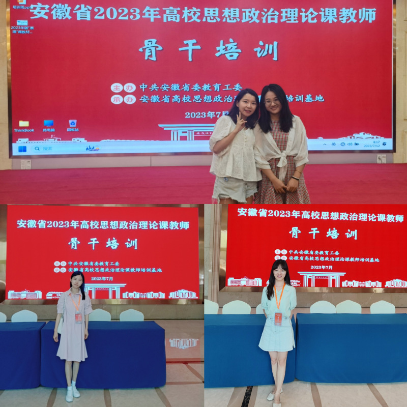 为深入学习贯彻习近平新时代中国特色社会主义思想,全面贯彻落实党的二十大精神、习近平总书记在二十届中央政治局第五次集体学习时的重要讲话精神,推动党的二十大精神融入思想政治理论课(以下简称“思政课”)教学,进一步加强高校思政课教师队伍建设,提升思政课教师的理论素养和教学水平,7月8日至12日,安徽省2023年高校思想政治理论课骨干教师专题培训在安徽芜湖举行,马克思主义学院选派刘雨菲、程海苗、耿庆、周贞贞四位老师参加了此次培训。