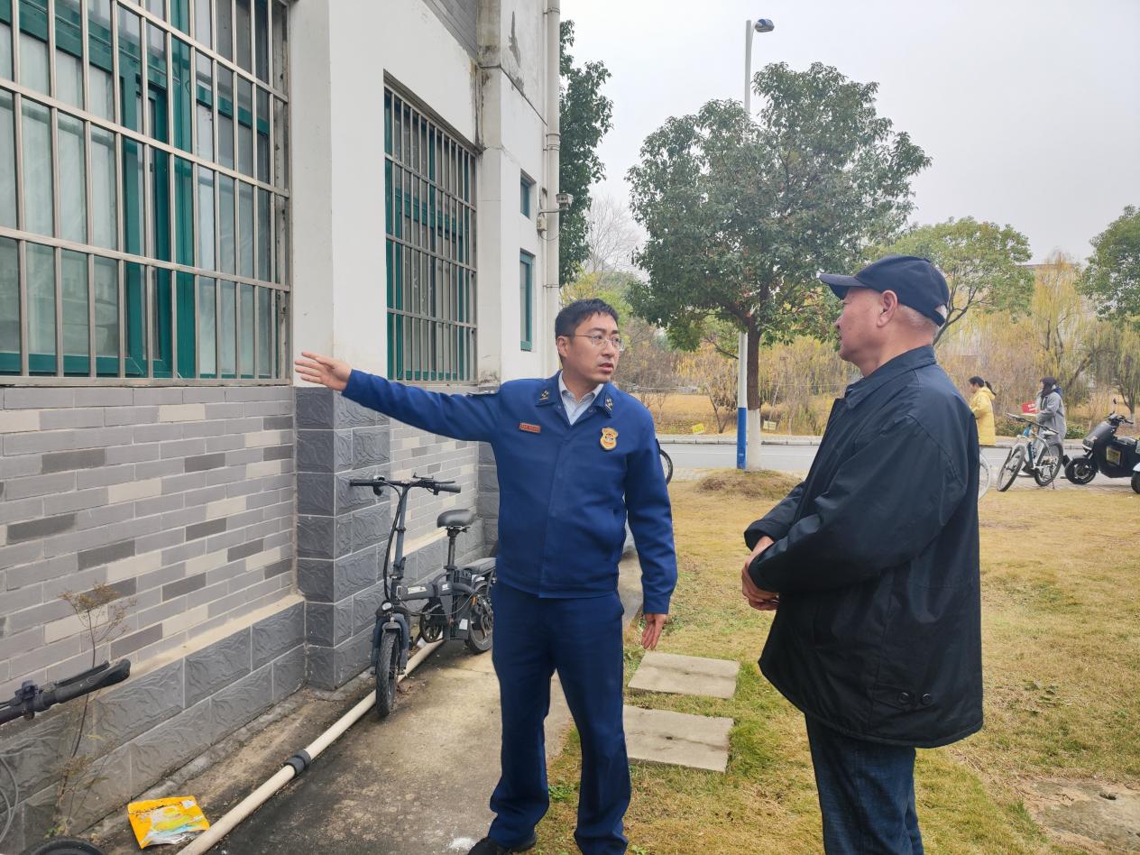 12月12日,巢湖市消防救援大队周参谋一行到滨湖校区开展消防安全检查工作,后勤保卫处处长祝杰、食堂负责人张文刚等工作人员陪同检查。