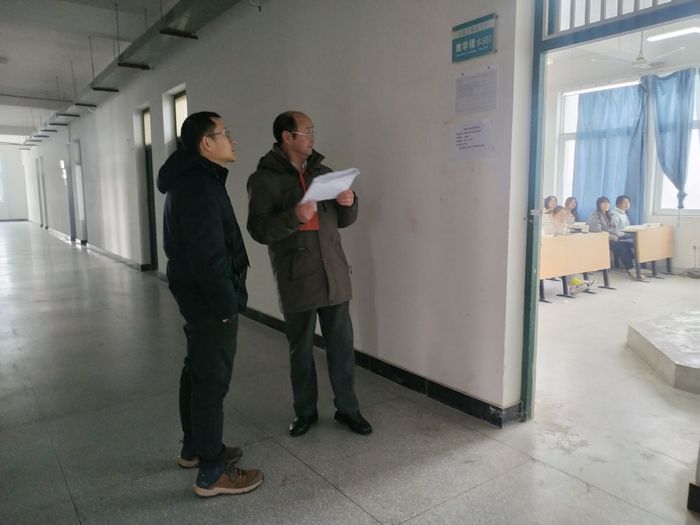 校领导一行来到教学楼宇深入了解教师到岗情况、教师授课情况、学生出勤情况、教学设备运行情况及教学楼环境卫生情况等,并在课堂与师生进行亲切交谈。