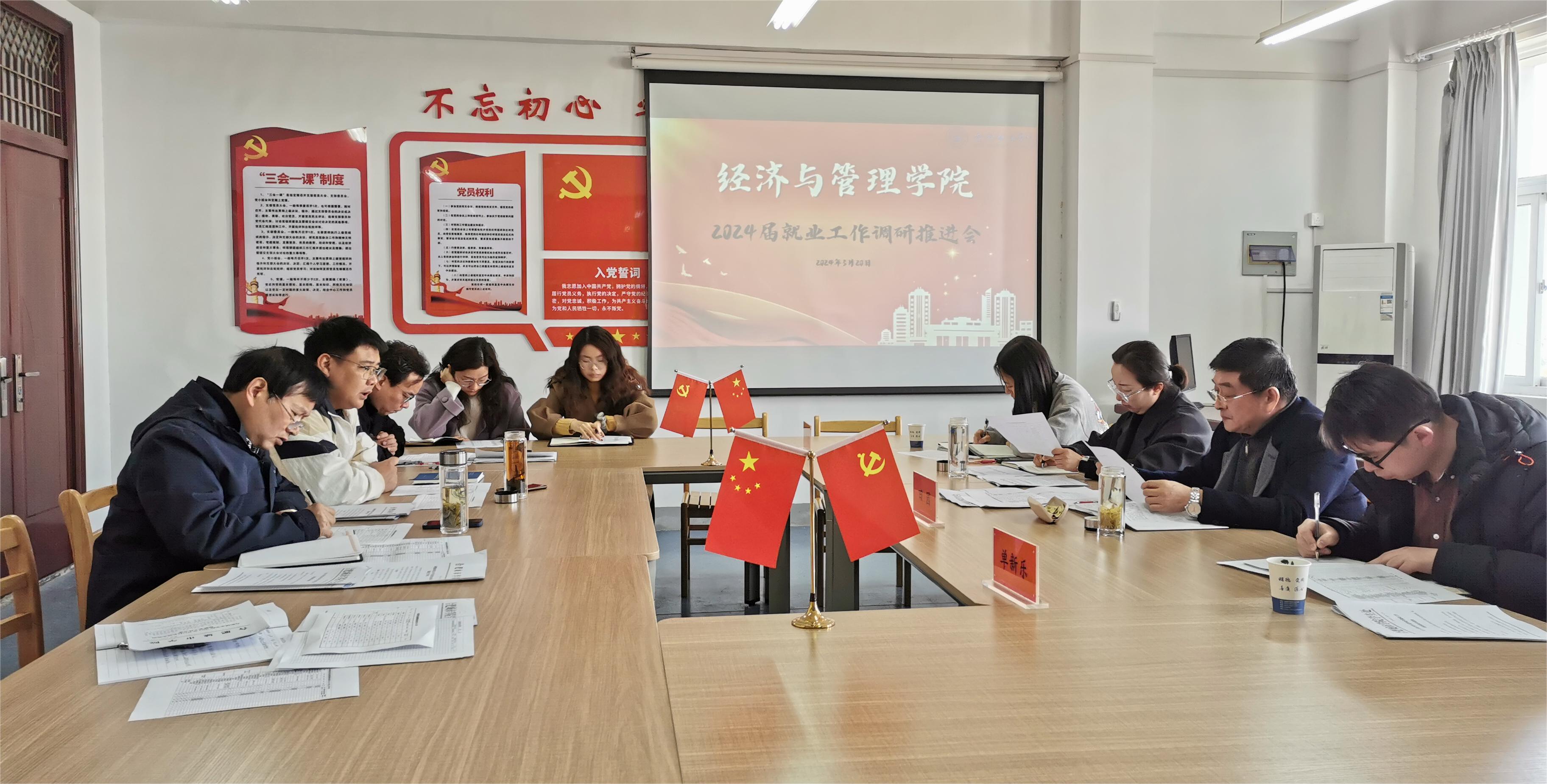 为了更好地落实毕业生就业工作,助推毕业生就业提质扩量,3月20日上午,副校长田园、学生处副处长徐俊带领就业指导中心工作人员到经济与管理学院调研指导就业工作并召开座谈会,经济与管理学院院长曹泽、党总支负责人周世敏、院长助理靳松、张荣荣、学工组长琚慧及毕业班全体辅导员参加座谈会。