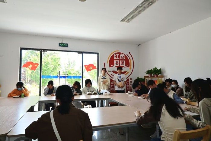 荫桐书院“红色书屋”里,开展了品读红色经典的活动。同学们以读书沙龙的形式,围坐在一起,各抒己见,分享“一篇红色家书”、分享“一本红色经典”,引领大家重温红色历史,感悟红色精神,共忆百年征程。这样的活动不仅促进了阅读,也让同学之间建立了更多的联系和交流。