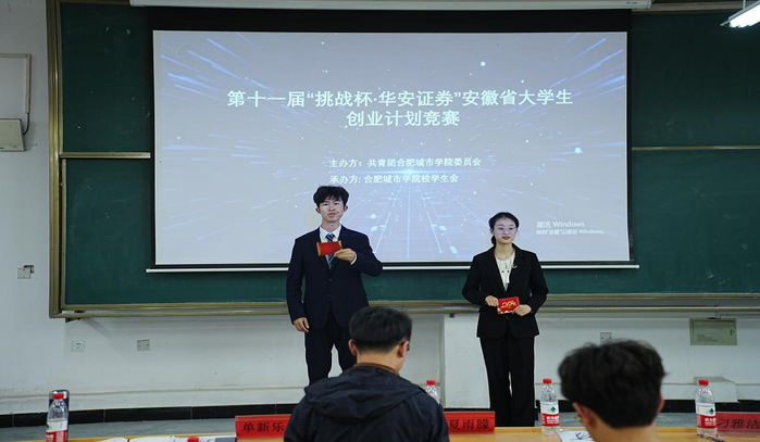 为发扬大学生的创业精神,锻炼大学生的创新精神和实践能力,4月25日下午,团委在南教108教室举办第十一届“挑战杯•华安证券”安徽省大学生创业计划竞赛校决赛。经济与管理学院人力资源专业教研室主任刁雅洁、大学生心理健康中心主任夏雨朦、学生处处长助理胡怡凡、学生就业指导中心副主任单新乐、经济与管理学院团总支书记、工程管理专业老师朱婧出席担任本次比赛评委。