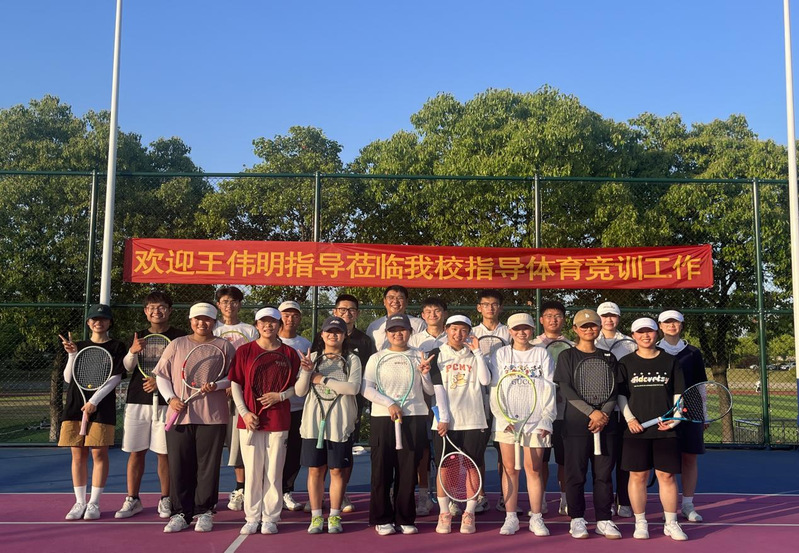 为了更好地备战2024年安徽省大学生网球联赛,5月14日下午,校邀请国家网球队体能教练王伟明到校指导校网球队进行专项网球体能训练,我校周世敏和陈兆祥两位老师参加交流和指导