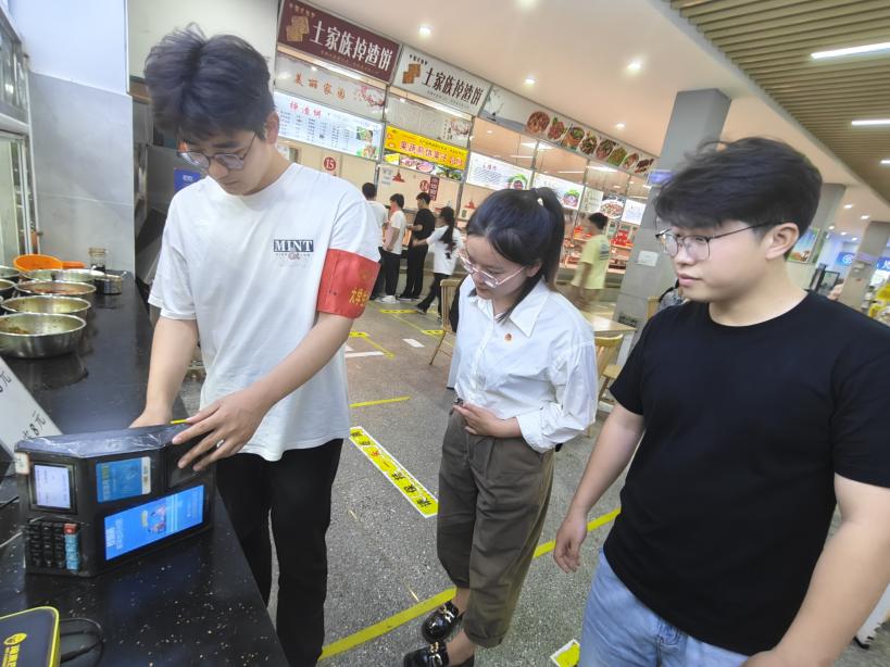 本次卡机升级的线下工作由后勤保卫处蒋国锐老师、校团委朱婧老师提供指导,带领学生伙食管理委员会成员进一步落实。线上工作则由网络管理中心王龙飞老师提供技术支持,以保证此次校园卡机全面升级。