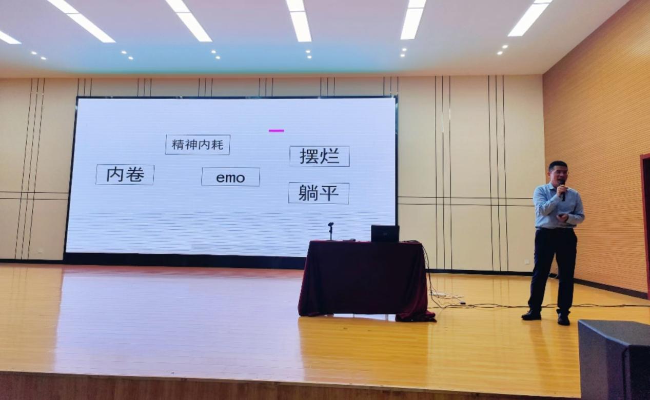 会后,张凯副教授在图书馆二楼大礼堂为在校学生举办大学生心理健康知识科普讲座。讲座包含内卷、精神内耗、emo、摆烂、躺平等热门话题,张凯副教授以生动的案例和深入浅出的讲解,他从心理学的角度分析了学生可能面临的各种心理问题,如学业压力、人际关系、自我认知等,并提供了实用的心理调适方法和应对策略。