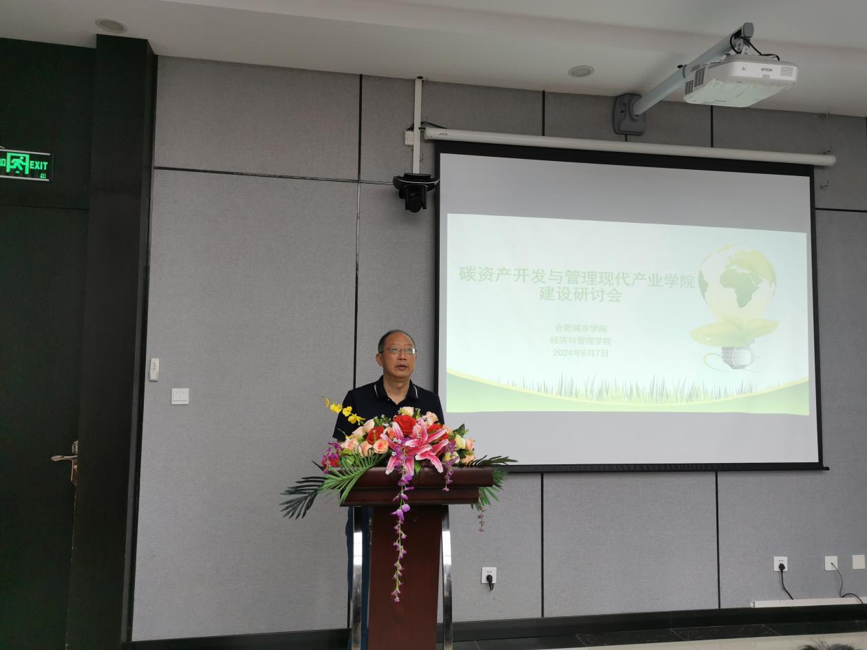 6月7日下午,经济与管理学院举办碳资产开发与管理现代产业学院建设研讨会。此次研讨会邀请了合肥市蜀山区青年企业家协会、合肥中绿低碳研究院、高新区青年企业家协会、中华环保联合会、安徽绿丞科技服务公司、安徽启承低碳环保公司等在内的二十余家省内碳资产开发与管理领域企业领导和专家。合肥工业大学、安徽建筑大学和合肥大学等从事碳资产研究的专家学者受邀参加此次研讨交流活动。校长祝家贵、教务处处长陈大伟和经济与管理学院老师们参加了此次研讨会,经济与管理学院院长曹泽主持。