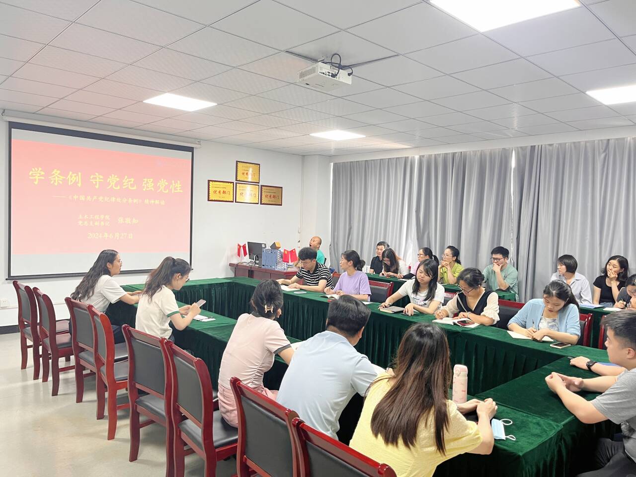 6月27日下午,土木工程学院党总支副书记张敬知以《学条例 守党纪 强党性》为题,深入领学解读新修订的《中国共产党纪律处分条例》精神。土木工程学院全体党员参加。