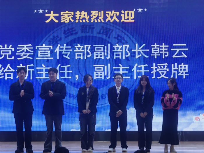 大会伊始,公示主任、副主任和新部长名单并授牌。主持人以热情饱满的姿态公布主任、副主任和新部长名单。由党委宣传部副部长韩云为新主任和副主任授牌,陈雨婷、黄晶莹两位老师给新部长授牌。