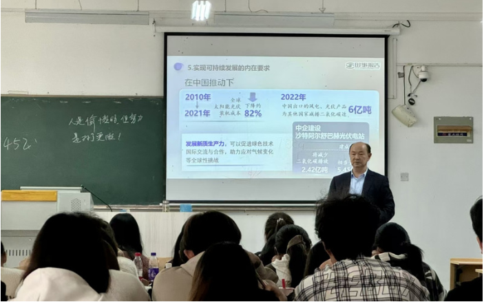 12月5日上午,副校长宇晓锋走进南教205,给2024级资产评估专业的同学们带来思政课专题《能源的饭碗必须端在自己手里——推动新时代我国新能源高质量发展》。