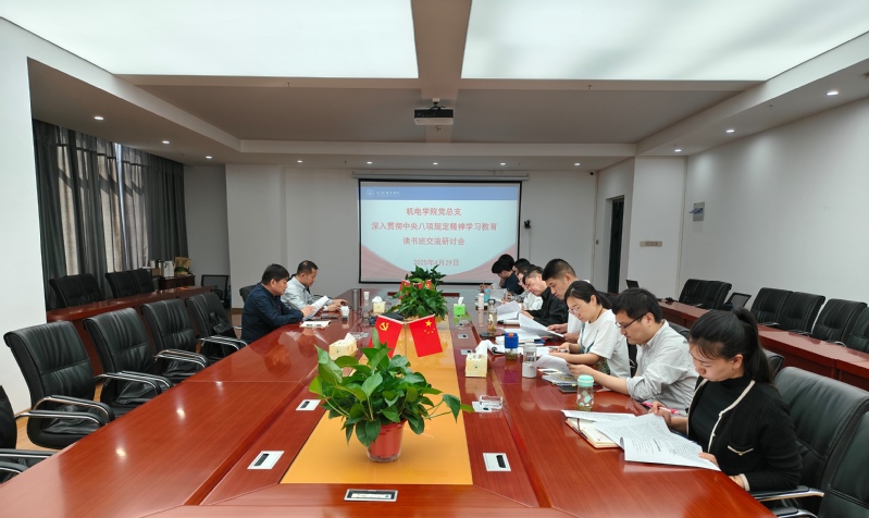 4月29日,机械与电气工程学院党总支在综训楼9楼会议室召开深入贯彻中央八项规定精神学习教育读书班交流研讨会。校党委委员、副校长田园携校督导组成员出席会议,学院班子成员、党总支委员、党支部书记参加会议。会议由学院党总支负责人胡泽春主持。