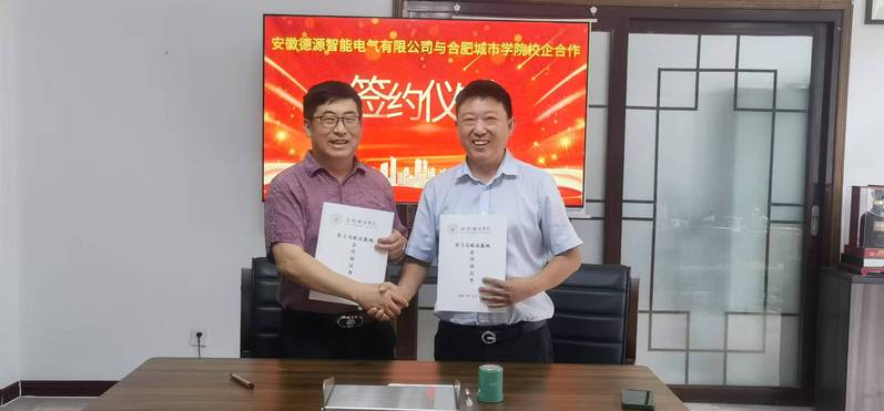 座谈会上,安徽德源智能电气有限公司董事长陈杰对汪永华的到访表示欢迎,并表示公司就业岗位60%面向应届毕业生,尤其需要具备智能电网故障诊断、储能系统优化等专业技能的人才。汪永华介绍了机电学院的办学特色、人才培养模式和毕业生情况。随后,双方围绕“人才培养、实习就业”等主题展开深入探讨。双方达成多项共识,期待后续在产教融合、人才培养等方面深入合作。最后,双方签订了合作协议并举行了授牌仪式。