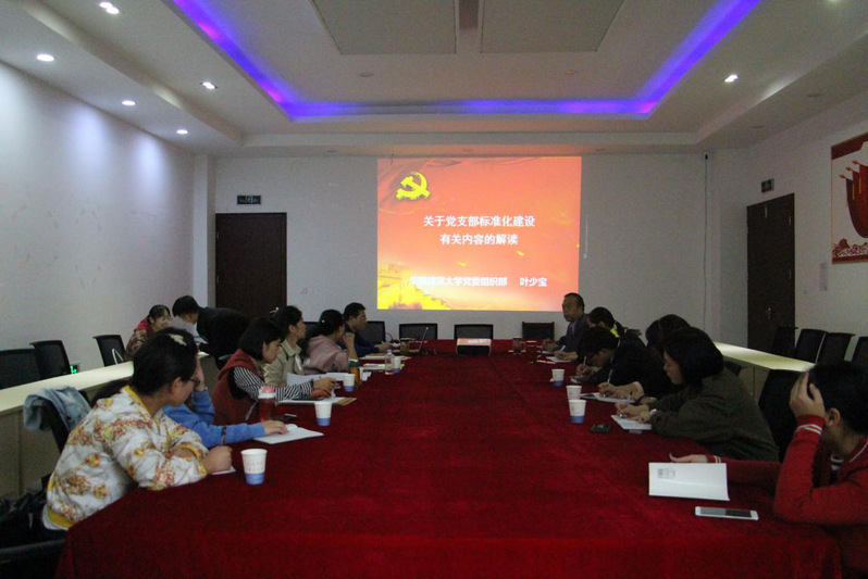 为响应党的十九大报告中提出的新时代党建工作的总要求,进一步加强学院党建、党务工作,10月25日下午,在图书馆一楼党员活动室召开了党支部书记培训会议,邀请安徽建筑大学党委组织部叶少宝老师莅临指导,院党委副书记魏宪友主持会议。各基层党支部书记参加了会议。