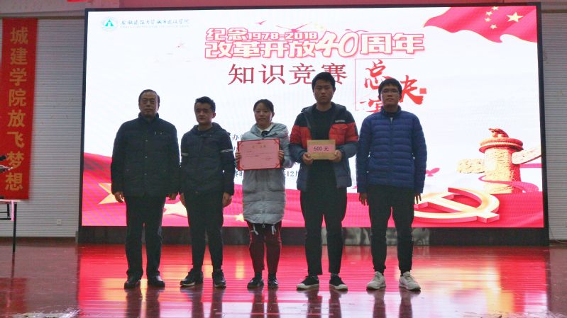 12月21日下午14点,安徽建筑大学城市建设学院庆祝改革开放40周年知识竞赛总决赛暨颁奖典礼于大礼堂举行。活动旨在帮助同学们了解改革开放和新时代中国国情,感受中华民族的伟大复兴。受邀到场嘉宾有院党委副书记魏宪友,党委办公室韩云、何晶老师以及四系党支部书记。