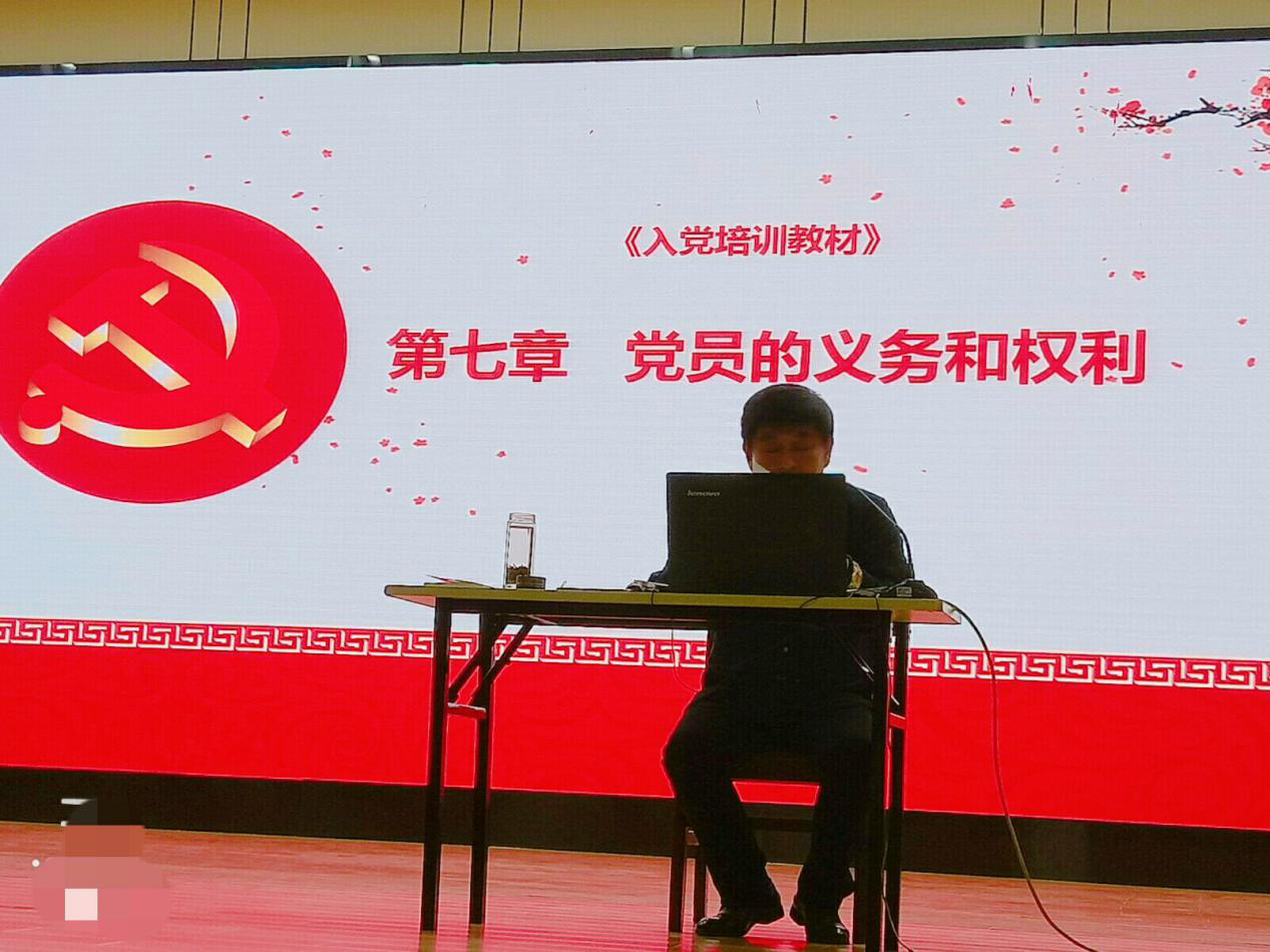 田园副院长首先以党章中党员的标准并结合学院现状展开讲课,接着为学员们依次详述了党员的八项权利、八项义务及权利与义务的辩证关系。 “八项权利”是党章赋予党员的美好政治权利与重要保障。党员应正确行使权利,明确行使权力的目标,严禁以权谋私,坚持在党的纪律面前人人平等。田园副院长也借此告诫在场所有的学员,无论身处何职,都必须脚踏实地,不被所拥有的名利、权位所蒙蔽,端正自身,努力为大家服务,奉献集体,拒绝高高在上,脱离群众。 “八项义务”是党员对党组织和党的事业应尽的责任,在保证党的团结、促进党的事业、实现党的纲领和规范党员行为方面具有重要意义。田园副院长结合学院实际分别从学习义务、实干义务、奉献义务、守纪义务、团结义务、治党义务、宗旨义务和道德义务八个方面为学员们详细阐述。希望学员们从上交入党申请书的那一刻,就该以党员的标准要求自己,自觉遵守党章、党规及学院的各项规章制度,例如一早一晚制度、课堂纪律、考试纪律等等提出了自己的建议和要求,并鼓励学员们在班风、系风、院风建设中积极发挥表率作用,遵守校纪校规,培养奉献精神。