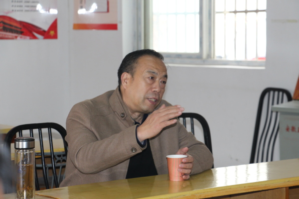 (城市建设学院党委书记李义宝) 城市建设学院党委书记李义宝发表讲话。李书记首先对这次与张疃村村委成员的见面表示荣幸,接着他从实际操作的角度,提出了基层党建工作共驻共建的新思路。李书记指出,可以创造性地设置校外辅导员这种方式,用实践加强年轻人和基层的联系;与此同时,学生也应多走出校园,关心留守儿童和贫困村民,从细节中体会“为人民服务”等。