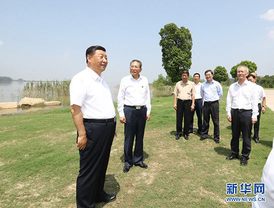 8月18日至21日,中共中央总书记、国家主席、中央军委主席习近平在安徽省考察。这是19日上午,习近平在马鞍山市薛家洼生态园,了解马鞍山市长江岸线综合整治和生态环境保护修复等情况。 新华社记者 王晔 摄