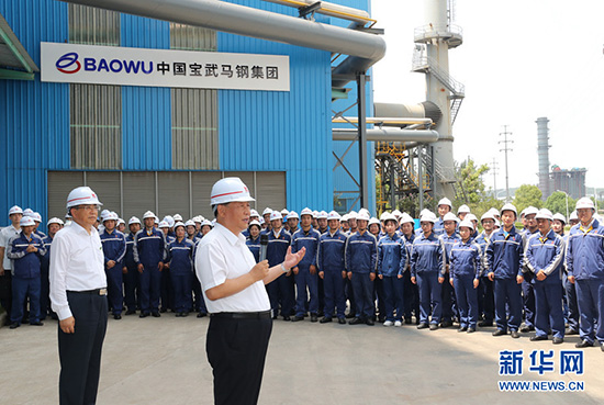 8月18日至21日,中共中央总书记、国家主席、中央军委主席习近平在安徽省考察。这是19日上午,习近平在马鞍山市中国宝武马钢集团优质合金棒材车间考察,了解企业复工复产和经营情况。 新华社记者 鞠鹏 摄 马鞍山市因钢而设、因钢而兴。习近平来到中国宝武马钢集团,了解企业生产经营情况,察看重点产品展示。随后,习近平走进优质合金棒材车间,察看加热炉、初轧机、中轧机等运行情况。车间外,企业劳动模范、工人代表看到总书记来了,热烈鼓掌。习近平亲切地同大家打招呼。他指出,疫情发生以来,马钢克服困难,率先复工复产,上半年产量和营收同比实现“双升”。要抓住深化国有企业改革和推动长三角一体化发展的重大机遇,加强新材料新技术研发,开发生产更多技术含量高、附加值高的新产品,增强市场竞争力。劳动模范是共和国的功臣,要大力弘扬劳模精神。