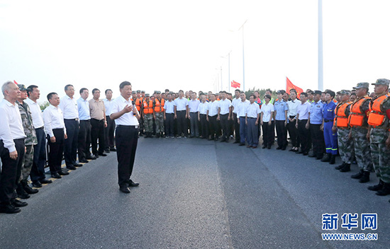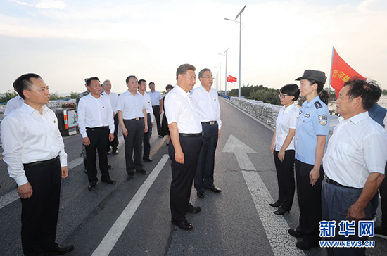 8月18日至21日,中共中央总书记、国家主席、中央军委主席习近平在安徽省考察。这是18日下午,习近平在阜阳市阜南县王家坝闸考察,了解安徽省防汛工作及王家坝开闸分洪情况。 新华社记者 王晔 摄