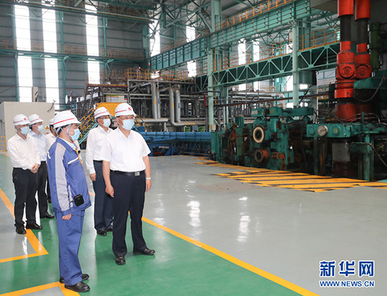 8月18日至21日,中共中央总书记、国家主席、中央军委主席习近平在安徽省考察。这是19日上午,习近平在马鞍山市中国宝武马钢集团优质合金棒材车间考察,了解企业复工复产和经营情况。 新华社记者 王晔 摄