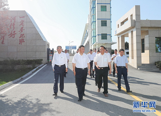8月18日至21日,中共中央总书记、国家主席、中央军委主席习近平在安徽省考察。这是18日下午,习近平在阜阳市阜南县红亮箱包有限公司察看车间生产线,了解企业灾后恢复生产和受灾群众、贫困群众就业情况。 新华社记者 鞠鹏 摄 随后,习近平来到附近的红亮箱包有限公司,了解阜南县开展就业扶贫和防止因灾致贫返贫情况,并察看车间生产线,同职工亲切交流。习近平希望企业克服困难,把灾害造成的损失抢回来。他要求各级党委和政府加大扶持力度,帮助企业渡过难关,保障受灾群众、贫困群众就业。