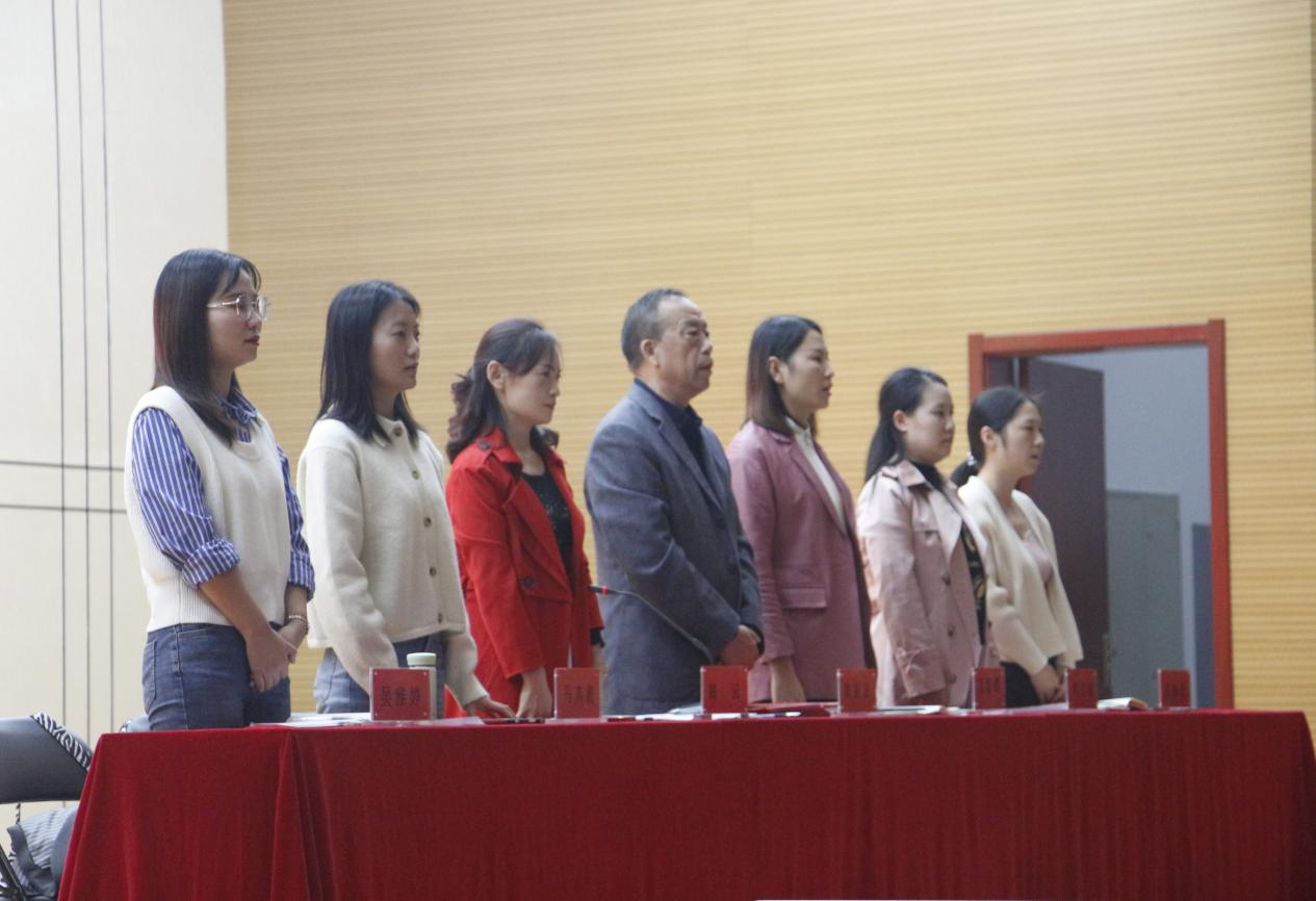 会议的第一项奏唱国歌。参加会议的全体师生一齐站立,面向国旗奏唱国歌。在整个过程中,全场氛围严肃认真。