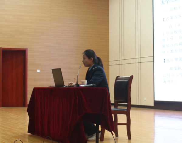 第二场是大学生创业优惠政策宣讲,由巢湖市税务局税政股工作人员陈子娟主讲,她长期从事税收政策法规相关工作,对涉企政策较为熟悉,实际操作能力强,有助于想要创业的同学了解最前沿、最实际的政策。