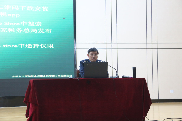 第一场是巢湖市税务局税政股副股长童志磊针对高校个人所得税汇算清缴政策进行讲解,童股长长期从事一线税收工作,对税收热点问题有深入研究,他的讲解深入浅出又切合实际,给需要了解个人所得税新政策的教职工极大的帮助。