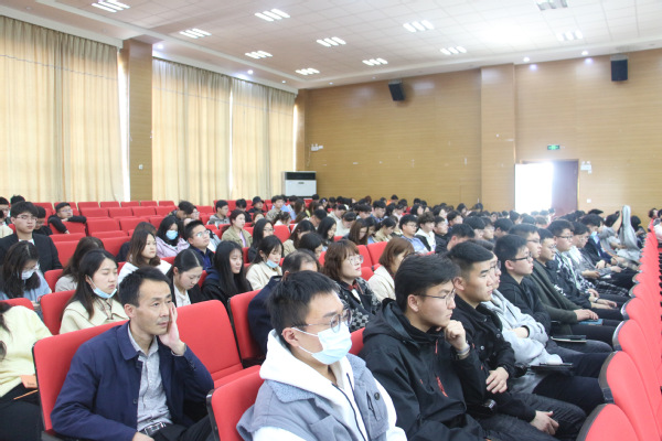 学习讲座在学院图书馆二楼大礼堂进行,学院全体教职工和部分学生代表参加讲座,讲座由魏书记主持。