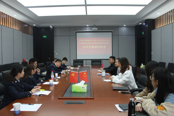 在学院讲解员带领部分税务局来访朋友走访校园的同时,税务局团支部和城建学院团委在图书馆一楼第二会议室签订共建协议书,以实现团委联动,互助共建,分别发挥各自所长,切实加强团组织的战斗力和凝聚力。